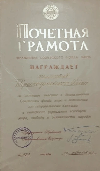 В том же весьма успешном в истории организации году коллектив Красноармейского райпо Самарской области занесён на всесоюзную Доску почёта Центросоюза и Всесоюзной Федерации организаций профессионального союза работников торговли, общественного питания и потребительской кооперации по итогам Всесоюзного социалистического соревнования за достижение высоких хозяйственно-финансовых показателей.